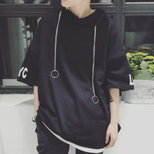夏季连帽短袖t恤男原宿风bf韩版潮流青少年学生宽松半袖百搭卫衣