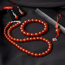 灵菲 红玛瑙组合套装红色水晶项链女原石简约本命年吊坠饰品配饰