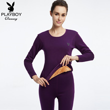 花花公子冬季保暖内衣女士加厚加绒黄金暖甲莫代尔棉圆领保暖套装