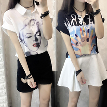 夏季新款韩版甜美衬衣领雪纺衬衫女夏学生短款套头上衣碎花小衫潮
