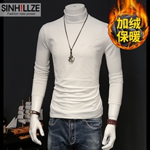 加绒保暖中高领男士长袖t恤 男韩版修身纯色打底衫男装t恤小衫潮