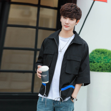 男士夏季新款七分袖衬衫宽松落肩袖防晒衣薄款青年休闲日系男装潮