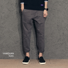 小烟圈原创韩版修身百搭休闲裤日系复古基本款口袋工装裤潮布裤男