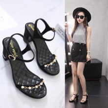 2017新款夏季凉鞋女学生夏百搭平底2016杨幂同款鞋粗跟中跟高跟鞋