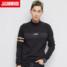 Jasonwood/坚持我的男士秋冬半高领拼接印绣花套头卫衣男