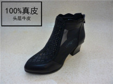 特价处理蓝鸟女鞋2017新款真皮网靴春秋鞋皮鞋纱网鞋镂空凉鞋高跟