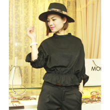 夏新款女装韩版雪纺小衫木耳边荷叶边黑色小衫