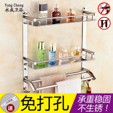 免打孔304不锈钢毛巾架3层浴室浴巾架收纳架钩卫生间置物架壁挂件