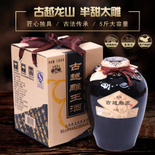 绍兴黄酒 古越龙山 古越雕王酒半甜型 2.5L坛装老酒 发物流