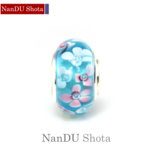 手工DIY转运珠配饰 玻璃大孔琉璃 手链散珠 超粉蓝樱花 金珠子