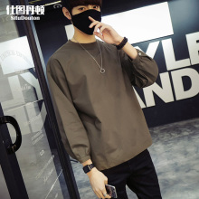潮男纯色套头日系宽松卫衣男士秋季新款时尚简约上衣青年学生外套
