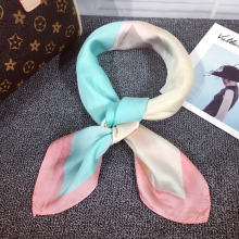 2017春夏季新款装饰小丝巾女拼色格子小方巾韩国百搭印花领巾围巾