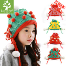 韩国Kocotree冬季女孩帽子可爱绒球加绒保暖护耳帽女童针织帽1-8