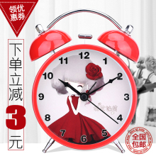 4寸花花姑娘个性创意学生儿童金属闹钟床头走时静音夜灯电子时钟