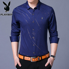 花花公子免烫长袖衬衫春季男士修身条纹衬衣商务休闲男装潮流寸衫
