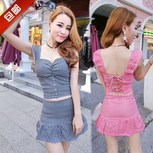 2016夏季时尚性感露背脐抹胸吊带上衣可爱蓬蓬短裙两件套装连衣裙