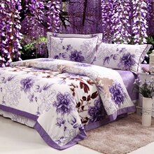 Dieu纯色欧式家纺纯棉贡缎床上用品四件全棉紫色红色婚庆床品棉