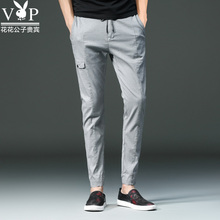 花花公子男士九分裤修身小脚裤哈伦裤男束脚9分裤夏季薄款休闲裤