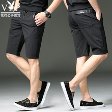 花花公子夏季男士五分休闲裤运动弹力中短裤宽松修身直筒速干青年
