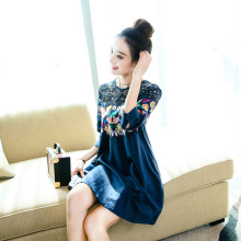 2017春季女装新款翻领网纱重工刺绣长款衬衫显瘦连衣裙