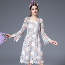 实拍2017春夏 女装新款欧洲站高档时尚女装品牌蕾丝绣花连衣裙