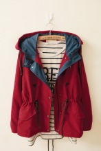 春秋韩国小清新学院风抽绳风衣外套女韩范糖果色连帽中长款学生装