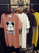 韩国范东大门新款夏女装宽松休闲卡通米奇开叉短袖中长款T恤