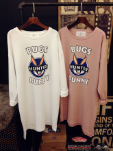 韩版东大门2015宽松大码卡通兔八哥休闲字母开叉长款卫衣长袖女秋