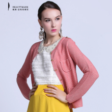 BeautyMark/飚美春秋新款中长款粉色毛衣外套简约宽松长袖针织衫