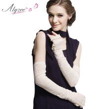 Alyzee爱丽榭夏天防晒手套女士开骑车防紫外线长款双面蕾丝半指薄
