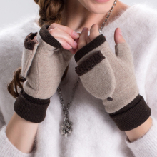 爱丽榭手套羊绒可爱半指韩版毛线两用秋季冬季女保暖加厚羊毛学生
