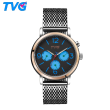 TVG手表男多功能大表盘石英表精钢夜光学生运动防水指针式男表