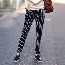 加肥加大码女装200斤胖mm秋条纹哈伦裤女长裤宽松显瘦小脚休闲裤