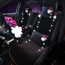 冬季新款汽车坐垫女短毛绒时尚通用座垫蔷薇花菱格镶钻保暖坐垫套