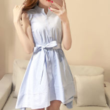 2017夏装a字裙蓬蓬吊带裙无袖背心衬衫裙收腰显瘦气质修身连衣裙