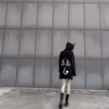 春季新品原宿小恶魔印花连帽宽松开衫卫衣外套学生宽松情侣上衣潮
