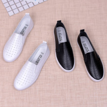 名将白鞋低帮浅口小白鞋女平底鞋韩版夏季乐福鞋镂空透气女懒人鞋