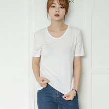 夏季韩版V领纯色莫代尔简约短袖t恤女宽松大码体恤显瘦百搭上衣