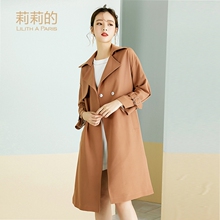 莉莉的风衣女2017春季新款双排扣宽松系带收腰 风衣女中长款