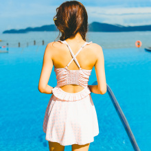 卟咚泳衣 露背装性感钢托聚拢款连体裙式平角可爱 泳装