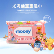 日本原装尤妮佳婴幼儿手口专用湿巾清洁湿纸巾便携装宝宝用品60抽