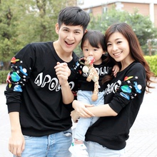 亲子装春秋装2017新款一家三口全家装休闲长袖T恤卫衣母女装秋装