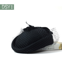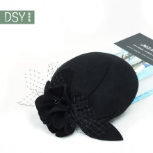 黛诗雅 欧美秋冬羊毛呢空姐大花头饰 面纱复古 礼仪帽子 舞台帽