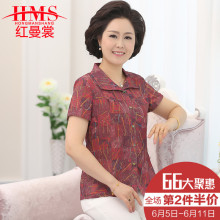 红曼裳中老年女装夏装衬衫妈妈装中年妇女上衣服饰老年人夏季衬衣
