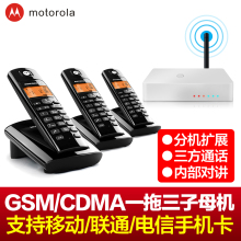 摩托罗拉 无绳电话无线固话 一拖三子母机 插移动联通 电信手机卡