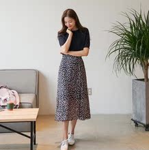 2017韩国新品飘逸印花俏皮雨滴印花雪纺荷叶摆半身裙女中长款