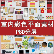 photoshop室内设计家装彩色平面图PSD分层户型图 PS家具 13G更新