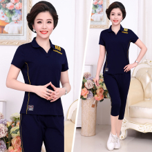 运动套装女两件套休闲妈妈装短袖七分裤运动服跑步套装夏季健身服