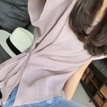 【大瓶UNIHOME定制2017侧绑带上衣休闲飘带杏粉色短袖雪纺衫女夏