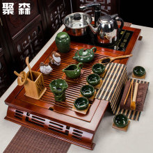 聚森 冰裂茶具 抽水电磁炉孔明实木茶盘 彩色台湾冰裂釉整套 陶瓷